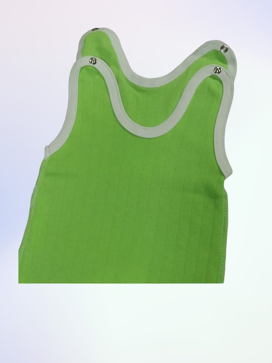 Ползунки высокие, однотонные, на плечиках застёжка на кнопочках.